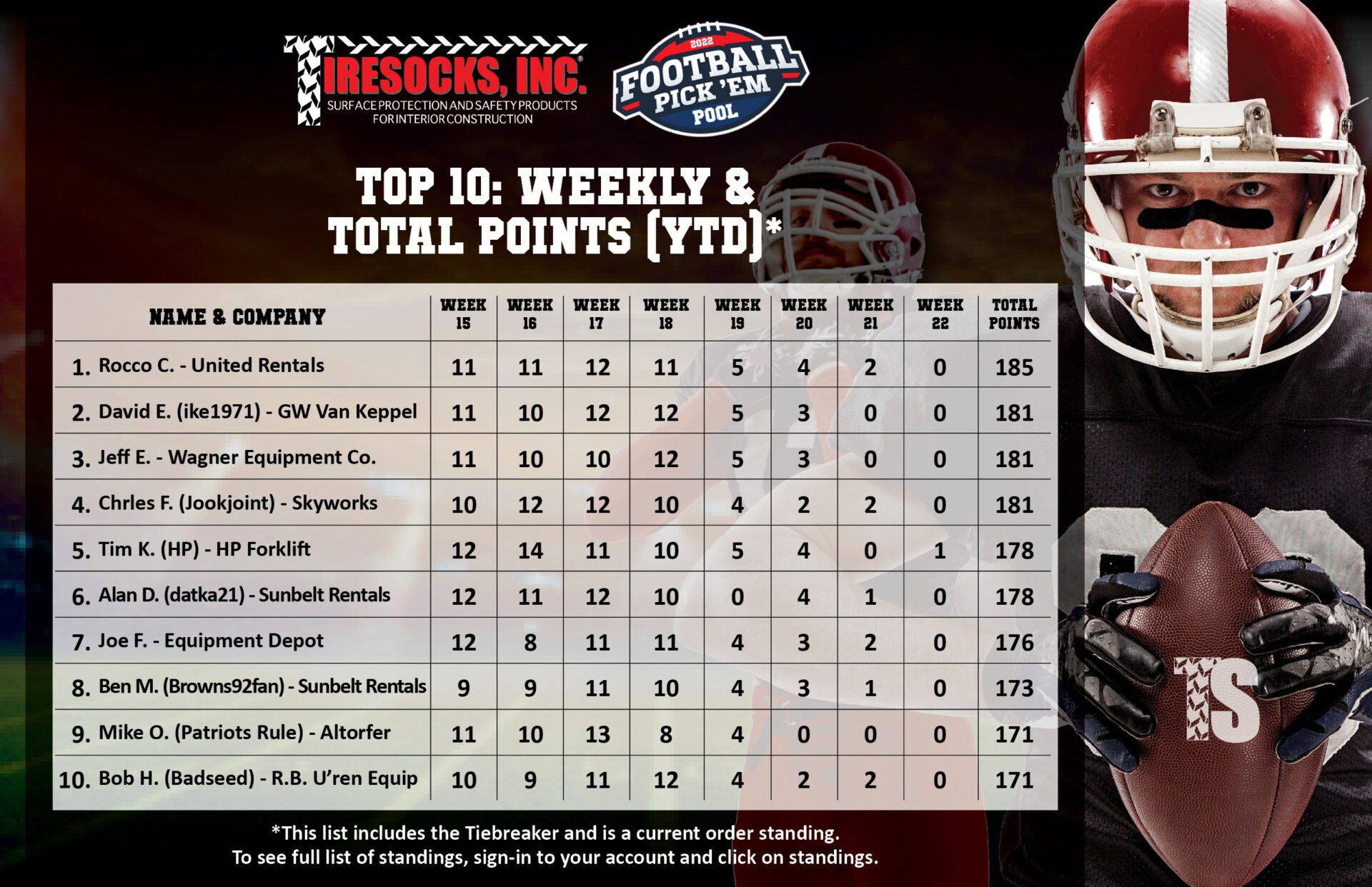 We want to start by thanking everyone who participated in our 6th annual Pick ’em Pool! This year’s NFL season was a wild ride: Tom Brady coming out of retirement, Mr. Irrelevant (Brock Purdy) taking the 49ers to the NFC Championship, the Texans winning the last week of the season to lose the #1 pick, etc. Overall, there were a ton of memorable moments this NFL season, and we want to thank you for being a part of our Pick ’em Pool!