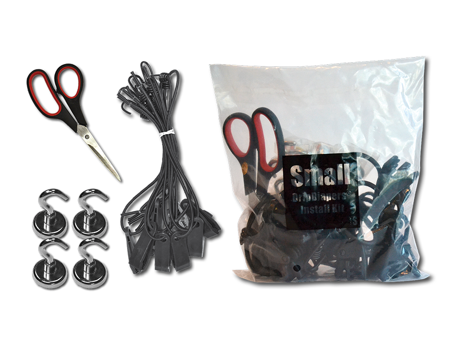 DripDiapers® are easy to use and come in seven standard and three pre-cut sizes, so they fit any piece of equipment. An installation kit comes with each DripDiaper®. The kit includes clip/hook combo bungee cords and neodymium magnetic hooks for attaching. With 96 lbs of pull force per magnet, you’ll never have to worry about a droopy diaper. These features make DripDiapers® quick to install and reliable, allowing you to focus on your work.