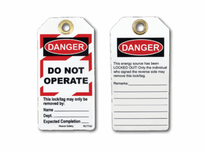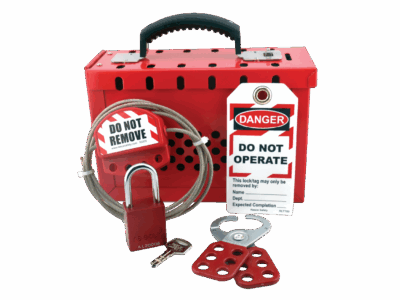 Safety locks, tags, and devices that prevent hazardous energy release during equipment maintenance, …