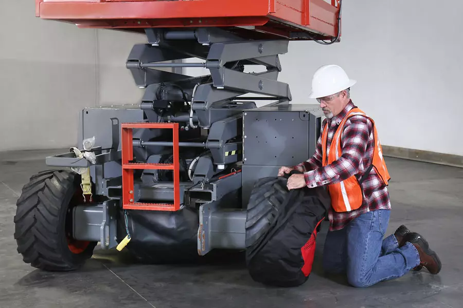 Equipment used for interior construction like boom lifts, scissor lifts, and warehouse forklifts often result in scuff marks and scratches on newly poured slabs and other finished flooring. Even equipment with non-marking tires can leave behind unsightly marks and residue. Clean up for this type of damage is time-consuming, tedious, and costly, typically causing major project delays and costly repairs. TireSocks® are the durable non-marking tire covers you need to protect your job site.